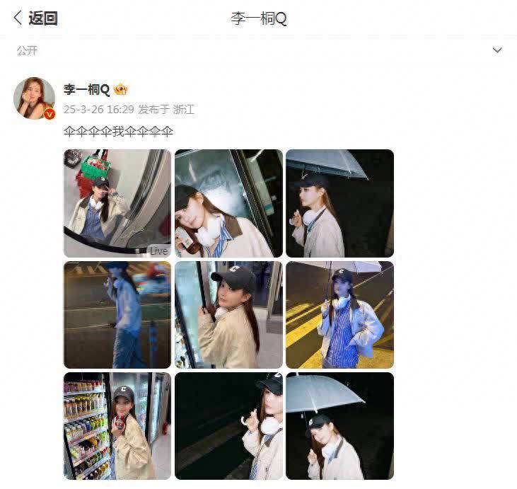 3月26日下午,李一桐在个人的社交平台上分享了一组九宫格美照,并为此配文:“伞伞伞伞我伞伞伞伞”,虽然只有简简单单的几个字,但是却凭借着俏皮可爱的形象和帅气的模样而受到了网友们的广泛关注。